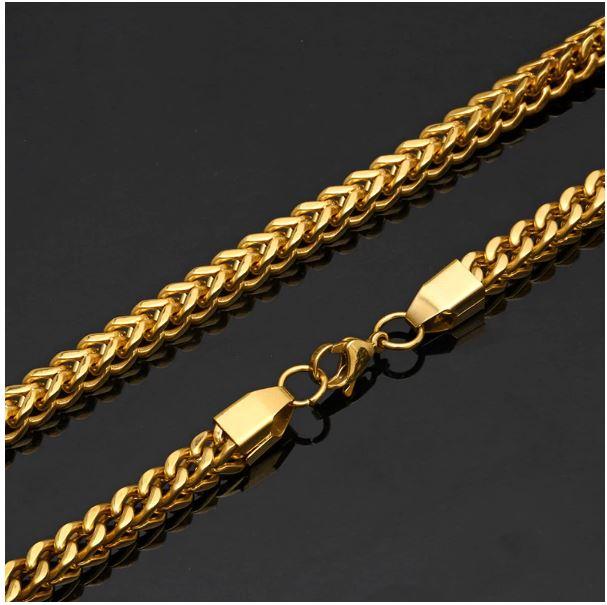 Pure Steel 5 MM Solid Steel Heavy Franco Chain in High Gloss finish as a stunning package to suite your perfect occasion or for daily wear with jeans. Available in variety of platings in Gold and Steel plating with lobster lock. Available at low wholesale jewelry hip hop price exclusively from Bling Master.
